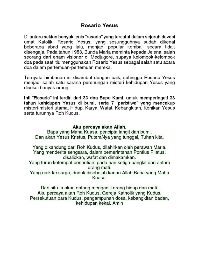 Penerbit obor, jakarta bekerja sama dengan komisi liturgi kwi. Seperti pada permulaan, sekarang selalu dan sepanjang segala abad. Dan akan yesus kristus puteranya yang tunggal, tuhan kita, yang dikandung dari roh kudus dari situ ia akan datang, mengadili orang yang hidup dan yang mati. Doa aku percaya adalah doa yang dipanjatkan untuk mengakui iman kristiani di dalam hari. Pengakuan iman (1) ps no 1 hal 1 syahadat para rasul aku percaya akan allah, bapa yang mahakuasa, pencipta langit dan bumi.